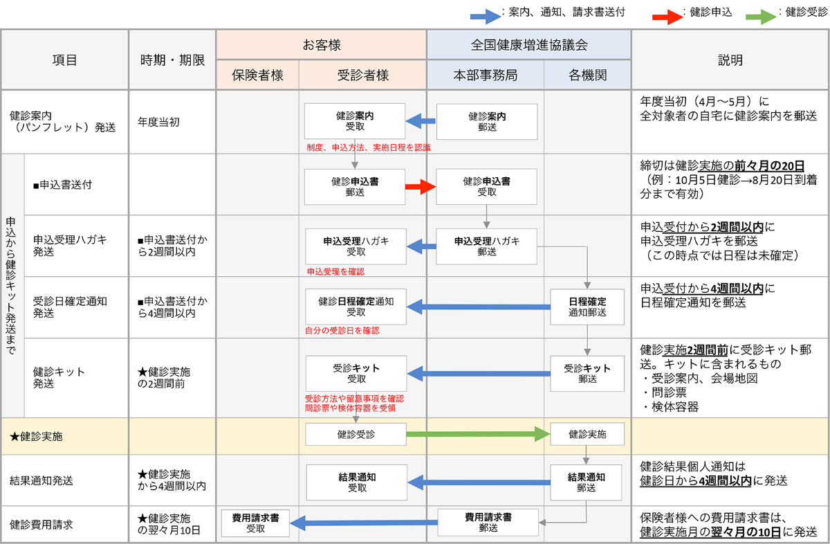 受診案内の発送や予約対応は全健協が対応し、保険者様の作業負担を軽減します。
